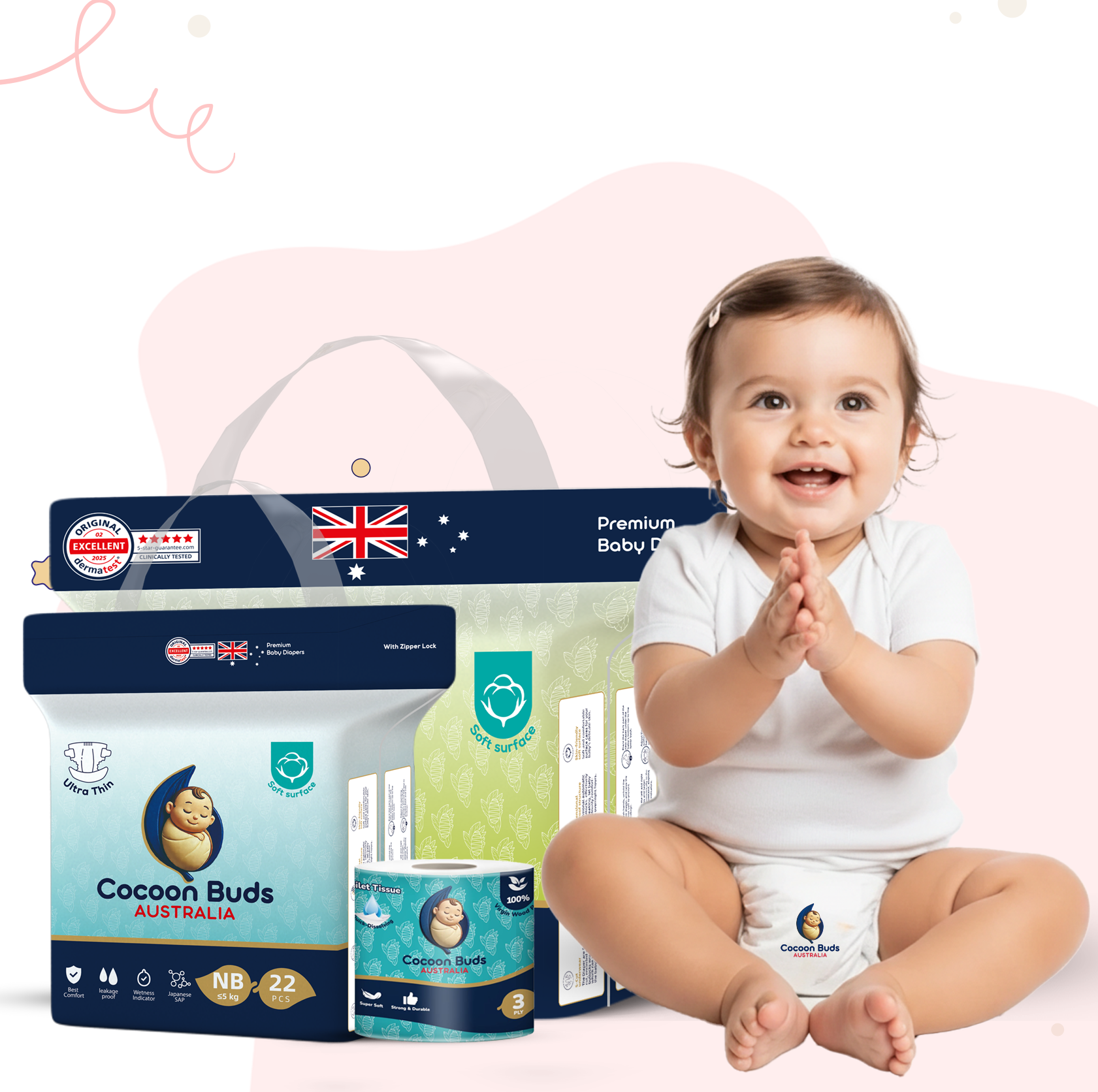 We believe every moment of care should be joyful for both parents and babies. With Cocoon Buds Australia, join us on a journey to nurture happy, healthy, and comfortable days—one gentle diaper change at a time!